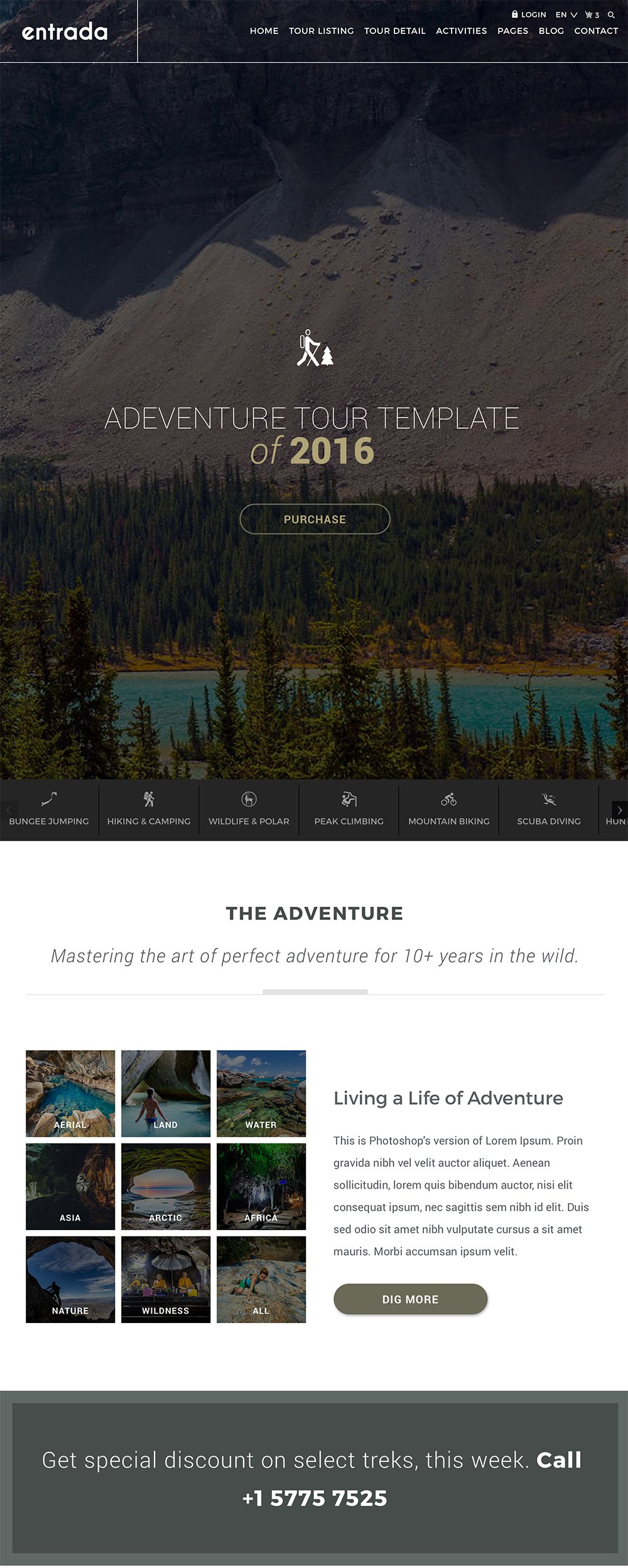 Entrada, the Adventure Tours and Travel HTML theme is built for tour operators and travel agencies around the world who specialise in tour packages like vacation tours, adventures, jungle safaris, cruise packages, hiking and camping, summer tours, winter tours etc.